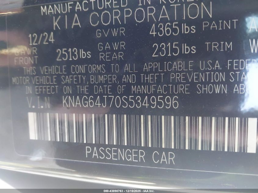 2025 KIA K5 - KNAG64J70S5349596, колір - Чорний, 2.5, Бензин, Передній привід із США