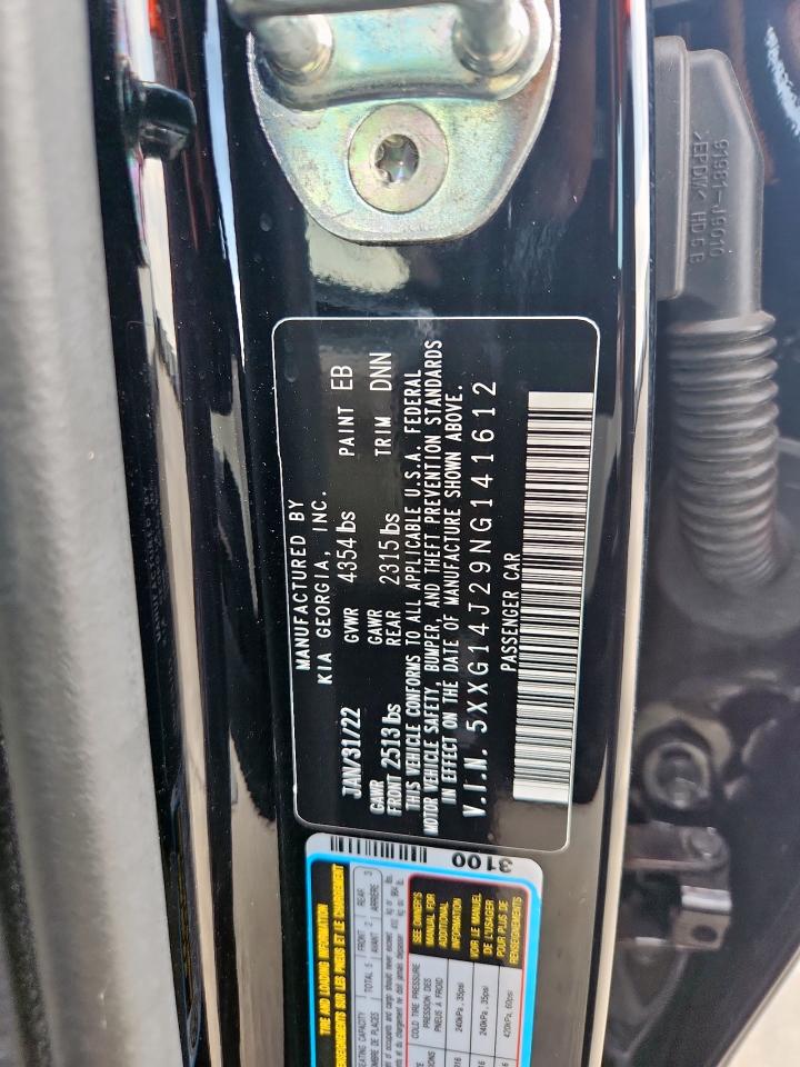 2022 KIA K5 - 5XXG14J29NG141612, колір - Чорний, 1.6, Бензин, із США
