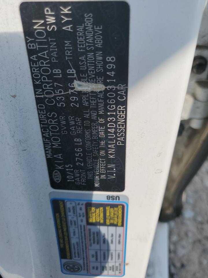 2016 KIA K900 - KNALU4D31G6031498, колір - Білий, 3.8, Бензин, Задній привід із США