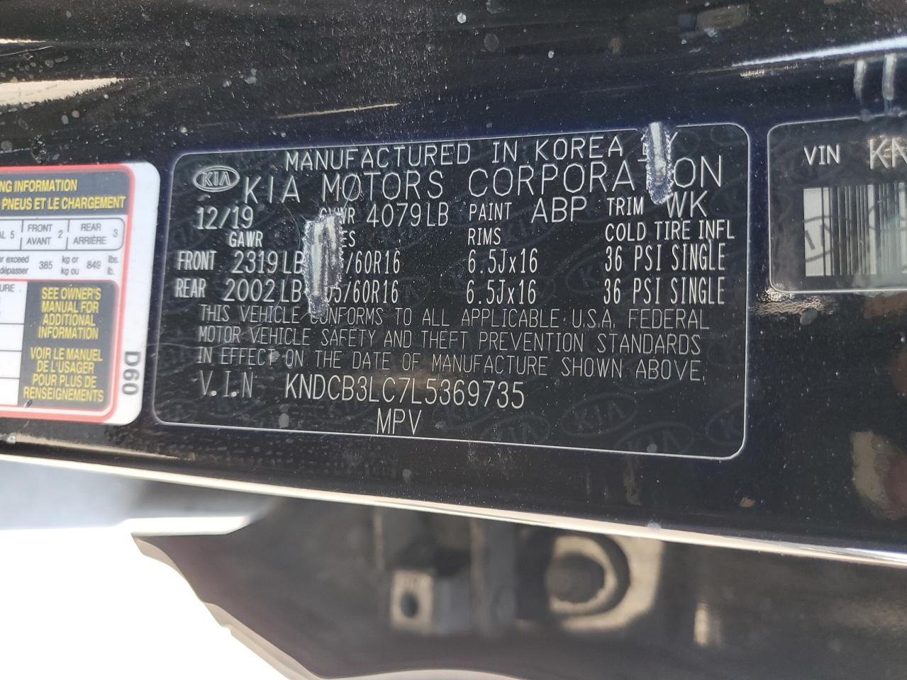 Колір ЧорнийЦиліндри 4VIN KNDCB3LC7L5369735Стан Заводиться та їде (перевірено)Ушкодження Передня або задняДата аукціона 2025-10-09
