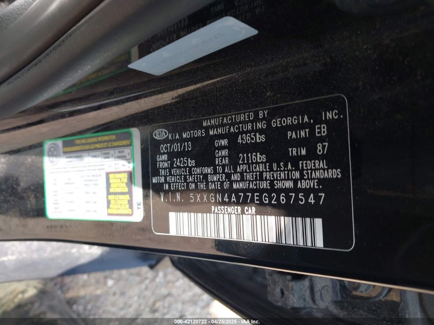 2014 KIA OPTIMA - 5XXGN4A77EG267547, колір - Чорний, 2.4, Бензин, Передній привід із США