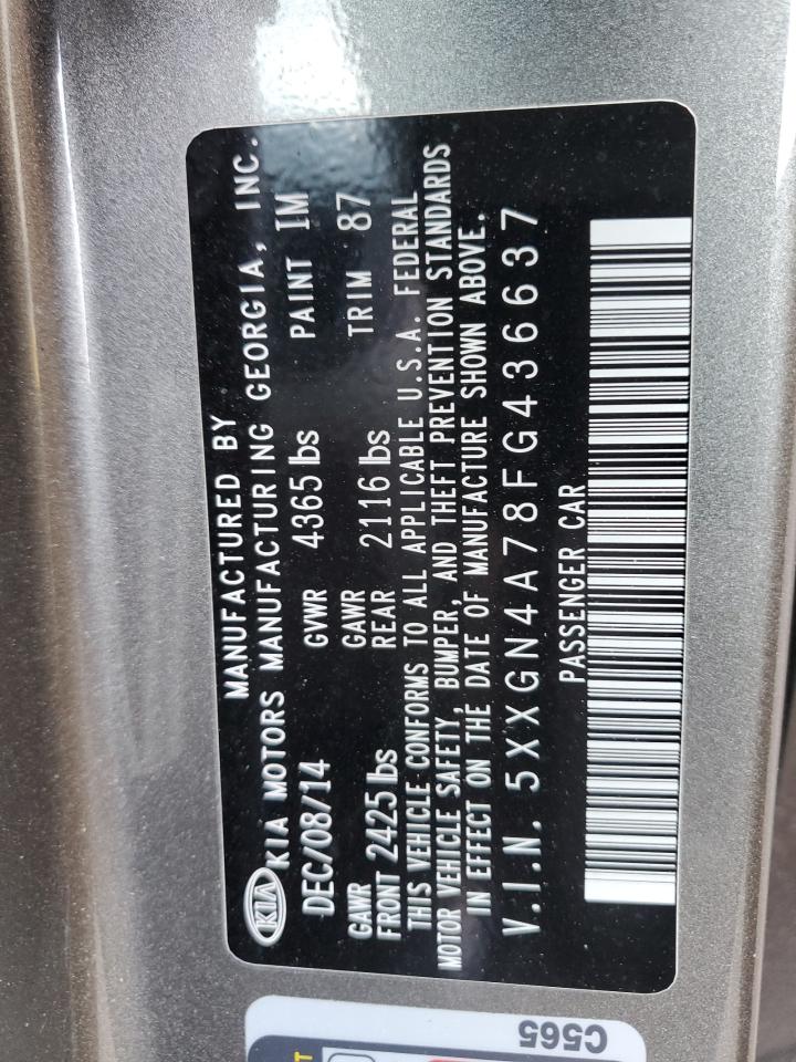 2015 KIA OPTIMA - 5XXGN4A78FG436637, колір - Сірий, 2.4, Бензин, із США