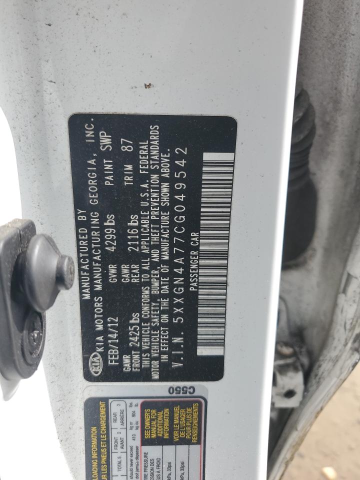 2012 KIA OPTIMA - 5XXGN4A77CG049542, колір - Білий, 2.4, Бензин, із США