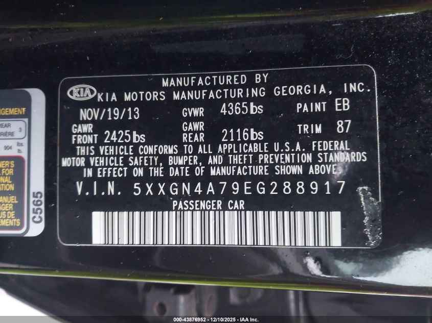 2014 KIA OPTIMA - 5XXGN4A79EG288917, колір - Чорний, 2.4, Бензин, Передній привід із США
