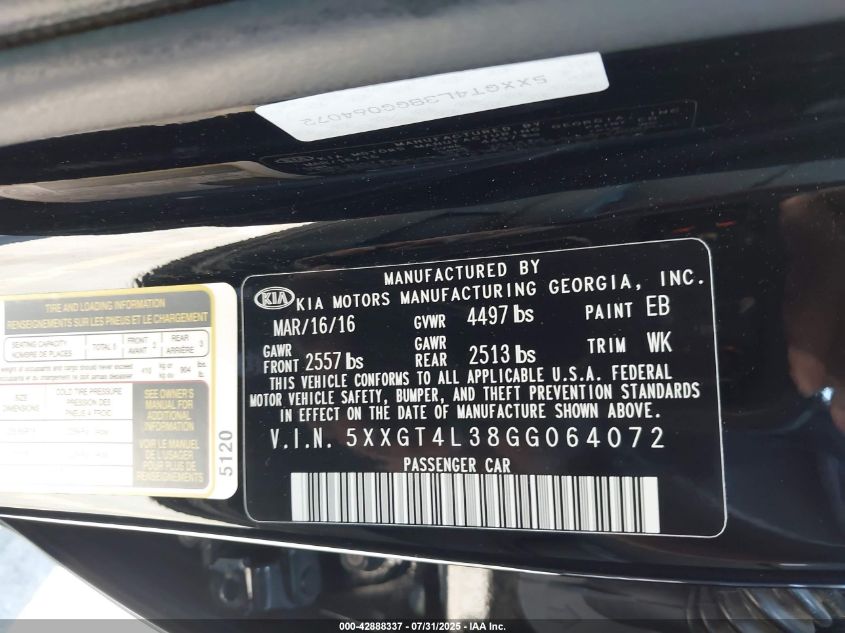 2016 KIA OPTIMA - 5XXGT4L38GG064072, колір - Чорний, 2.4, Бензин, Передній привід із США