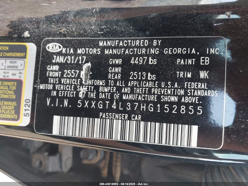 2017 KIA OPTIMA - 5XXGT4L37HG152855, колір - Чорний, 2.4, Бензин, Передній привід із США