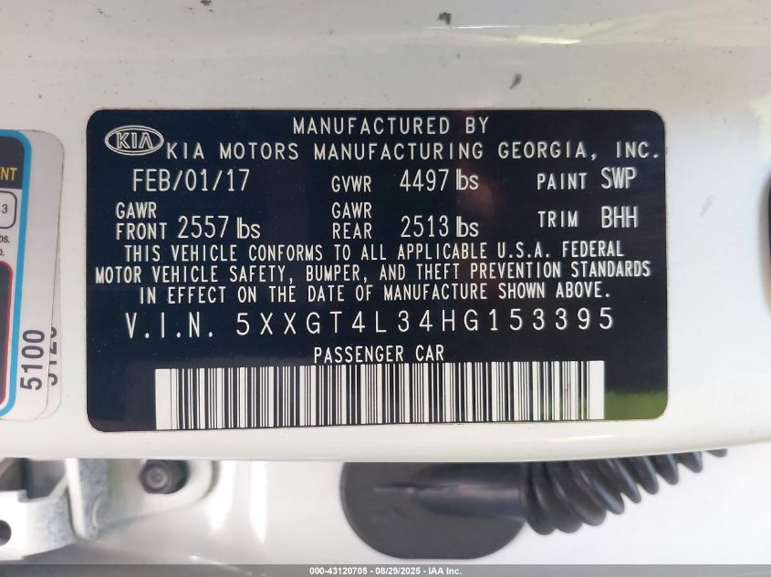 2017 KIA OPTIMA - 5XXGT4L34HG153395, колір - Білий, 2.4, Бензин, Передній привід із США