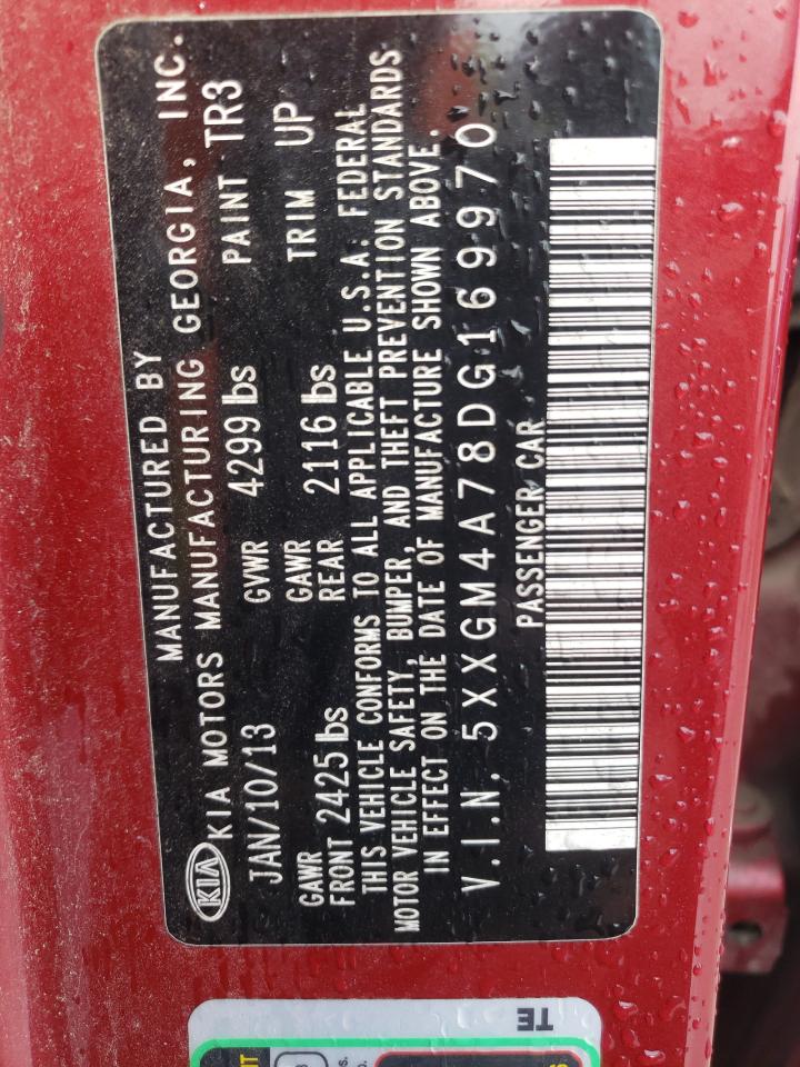2013 KIA OPTIMA - 5XXGM4A78DG169970, колір - Бордовий, 2.4, Бензин, із США