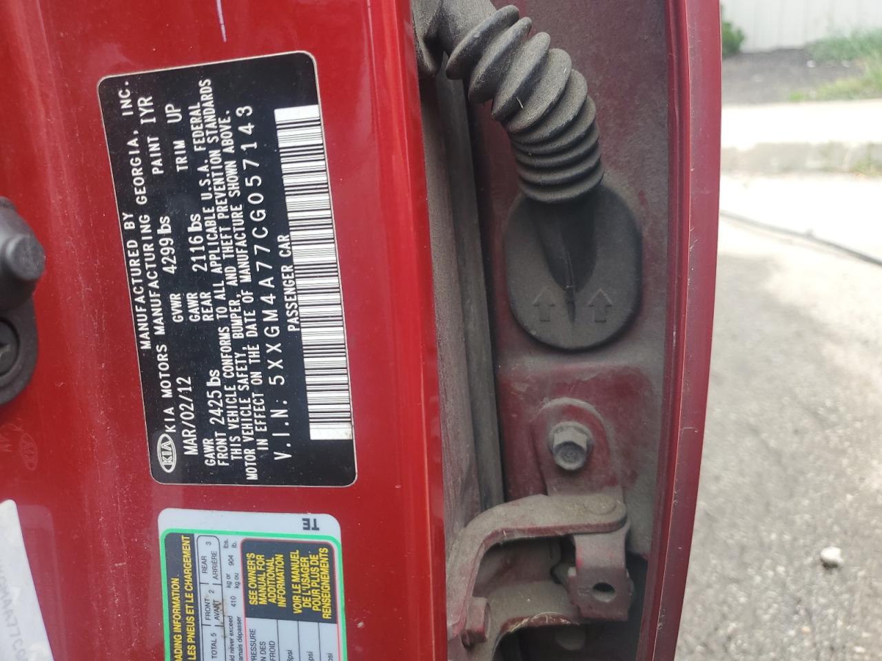 2012 KIA OPTIMA - 5XXGM4A77CG057143, колір - Бургундія, 2.4, Бензин, із США