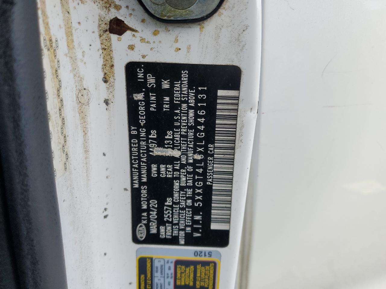 Колір БілийЦиліндри 4VIN 5XXGT4L3XLG446131Стан НевідомоУшкодження З боківДата аукціона 2025-10-13
