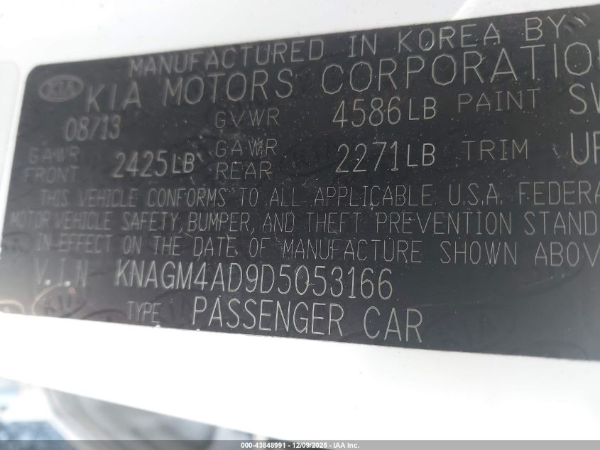 2013 KIA OPTIMA - KNAGM4AD9D5053166, колір - Білий, 2.4, Гібрид, Передній привід із США