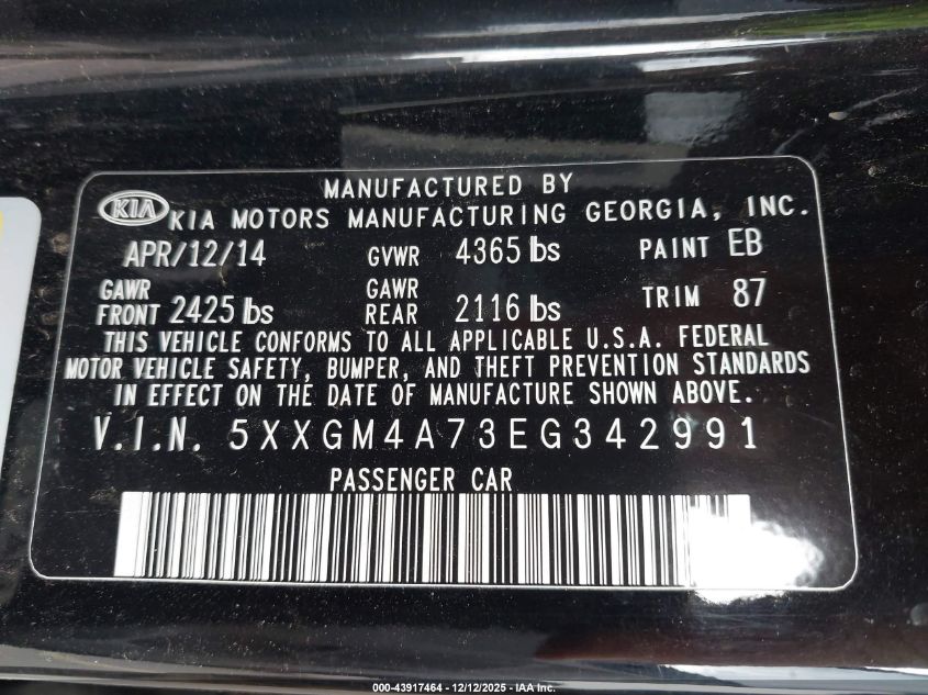 2014 KIA OPTIMA - 5XXGM4A73EG342991, колір - Чорний, 2.4, Бензин, Передній привід із США