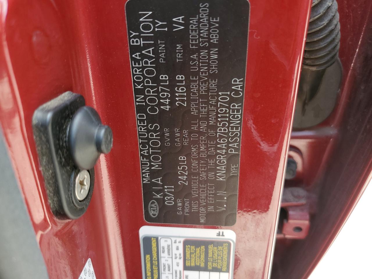 2011 KIA OPTIMA - KNAGR4A67B5119701, колір - Червоний, 2.0, Бензин, із США