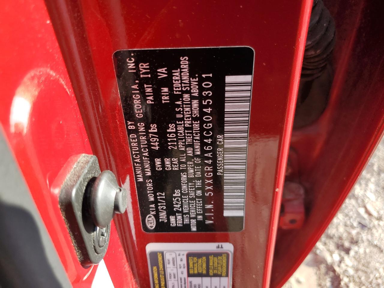2012 KIA OPTIMA - 5XXGR4A64CG045301, колір - Червоний, 2.0, Бензин, із США