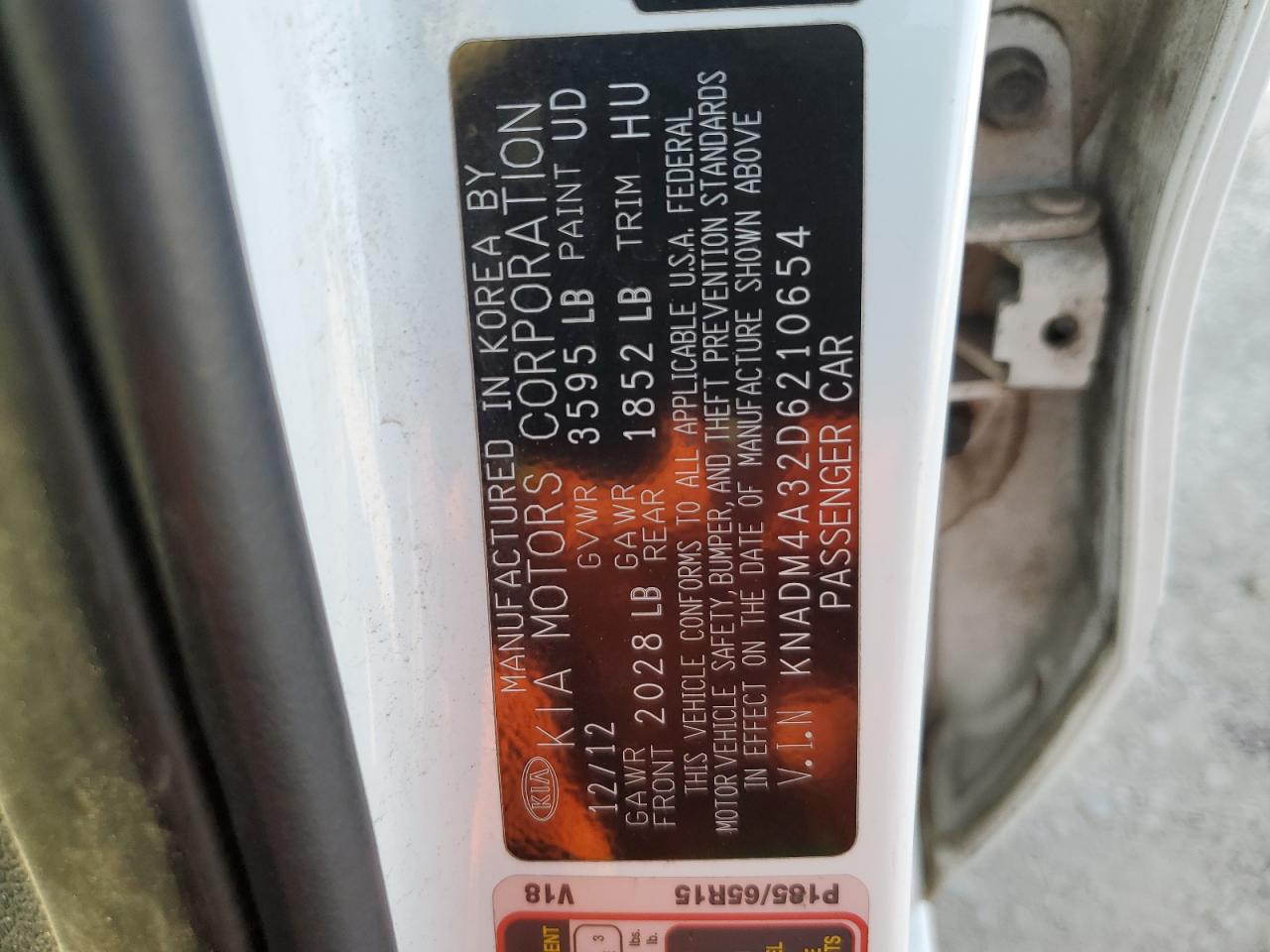 2013 KIA RIO - KNADM4A32D6210654, колір - Білий, 1.6, Бензин, із США