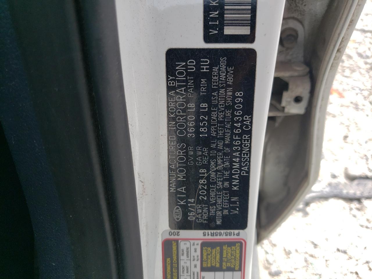 2015 KIA RIO - KNADM4A36F6436098, колір - Білий, 1.6, Бензин, із США