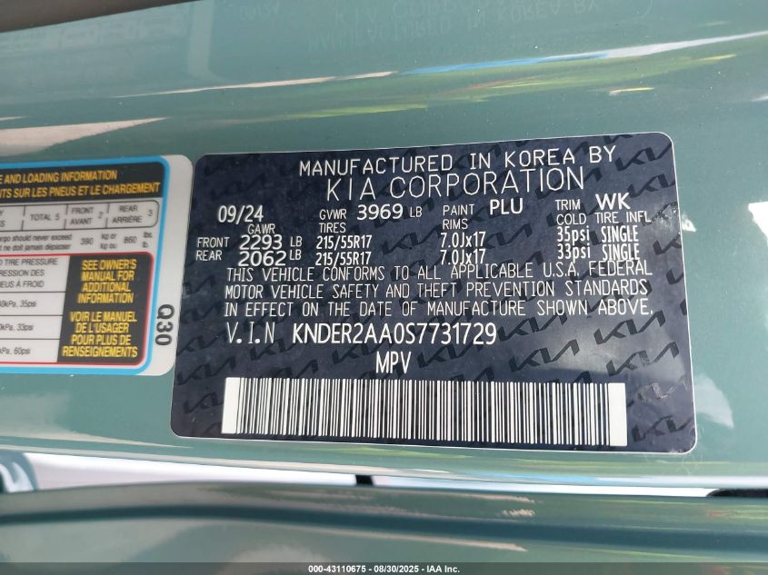 Колір БірюзовийЦиліндри 4Привід Передній привідVIN KNDER2AA0S7731729Стан СтаціонарноУшкодження Передня права