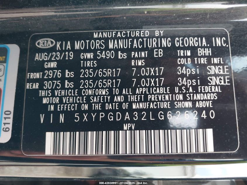 2020 KIA SORENTO - 5XYPGDA32LG626240, колір - Чорний, 2.4, Бензин, Повний привід із США