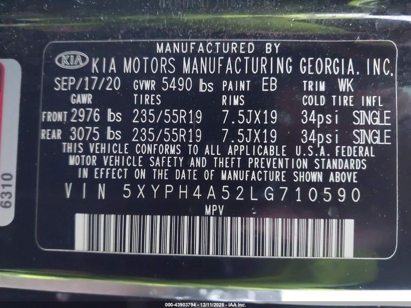 2020 KIA SORENTO - 5XYPH4A52LG710590, колір - Чорний, 3.3, Бензин, Передній привід із США