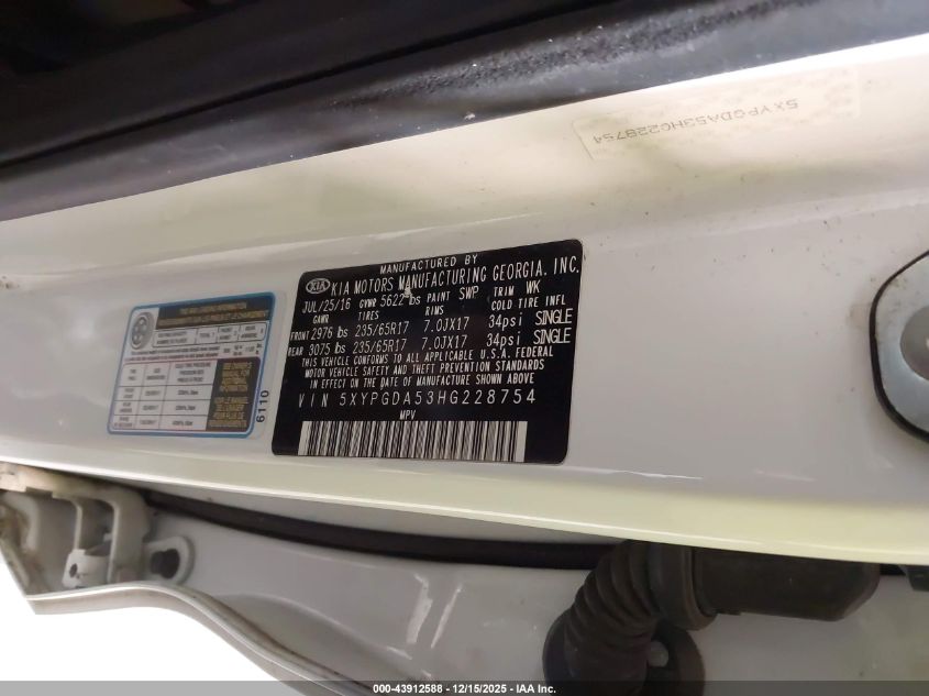 2017 KIA SORENTO - 5XYPGDA53HG228754, колір - Білий, 3.3, Бензин, Повний привід із США
