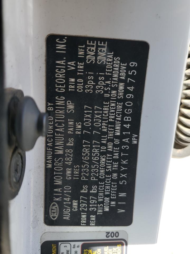 2011 KIA SORENTO - 5XYKT3A14BG094759, колір - Білий, 2.4, Бензин, із США