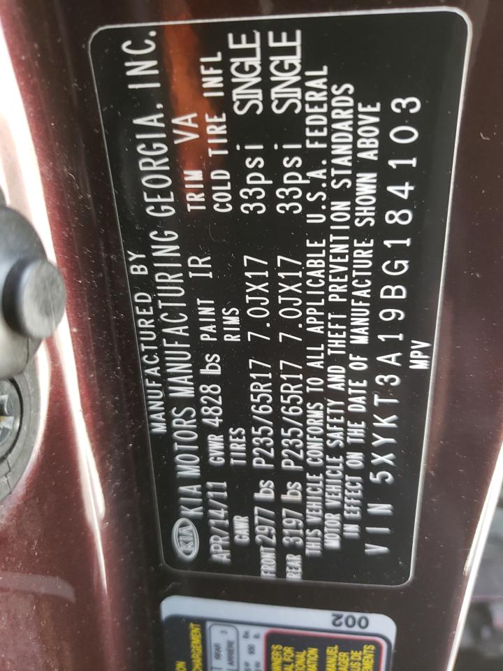 2011 KIA SORENTO - 5XYKT3A19BG184103, колір - Бургундія, 2.4, Бензин, із США