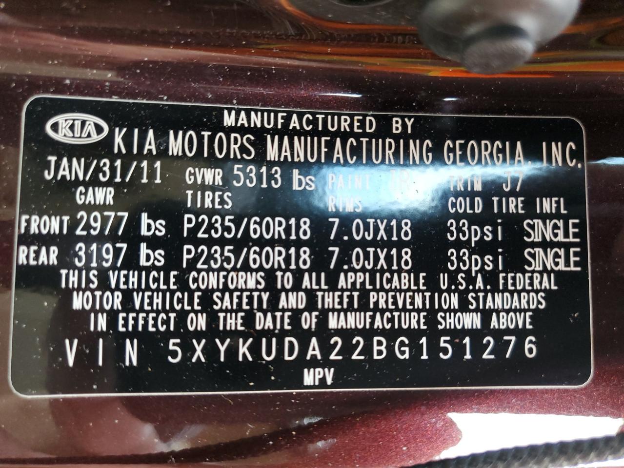 2011 KIA SORENTO - 5XYKUDA22BG151276, колір - Фіолетовий, 3.5, Бензин, Повний привід із США