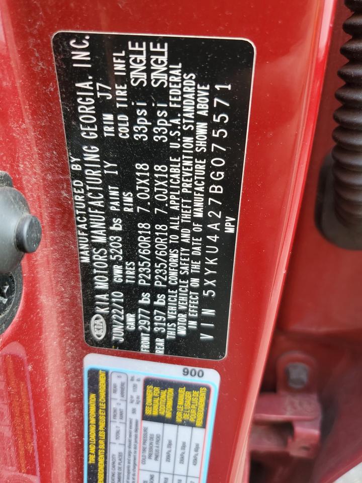 2011 KIA SORENTO - 5XYKU4A27BG075571, колір - Червоний, 3.5, Бензин, із США
