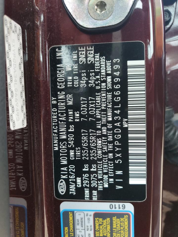 2020 KIA SORENTO - 5XYPGDA34LG669493, колір - Бургундія, 2.4, Бензин, Повний привід із США