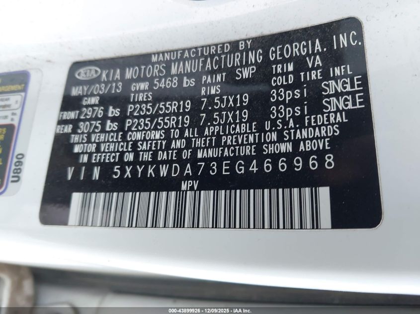 2014 KIA SORENTO - 5XYKWDA73EG466968, колір - Білий, 3.3, Бензин, Повний привід із США