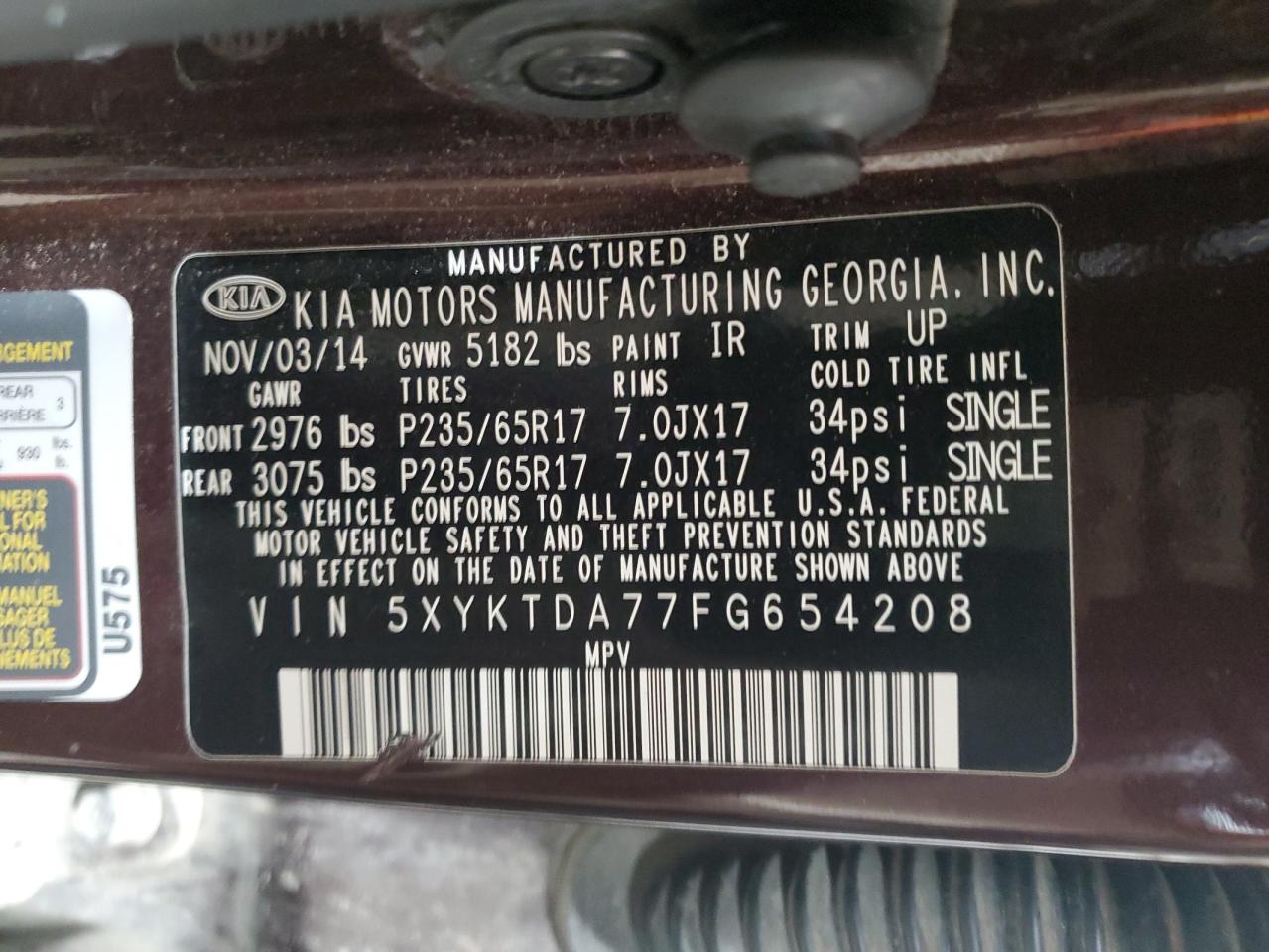 2015 KIA SORENTO - 5XYKTDA77FG654208, колір - Бургундія, 3.3, Бензин, Повний привід із США