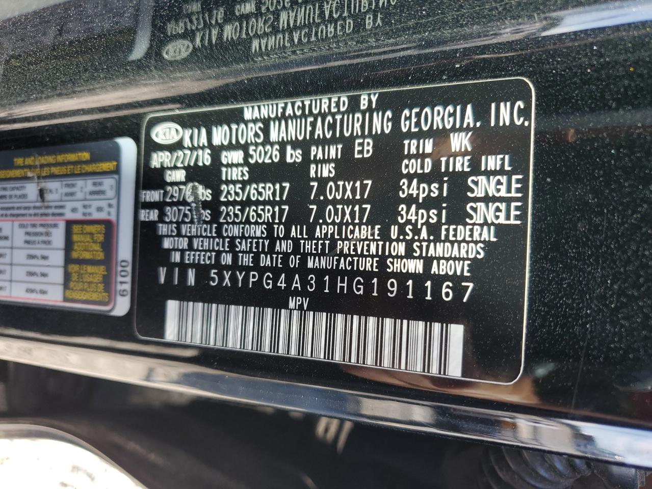 Колір ЧорнийЦиліндри 4VIN 5XYPG4A31HG191167Стан ЗаводитьсяУшкодження По всьому автоДата аукціона 2025-10-08
