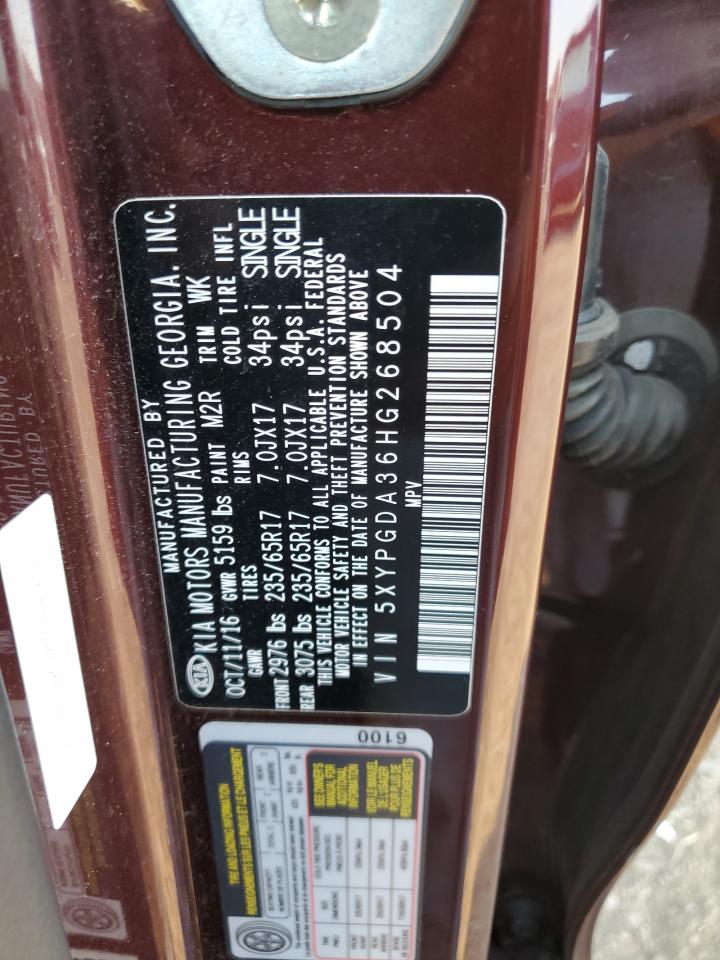2017 KIA SORENTO - 5XYPGDA36HG268504, колір - Бургундія, 2.4, Бензин, Повний привід із США