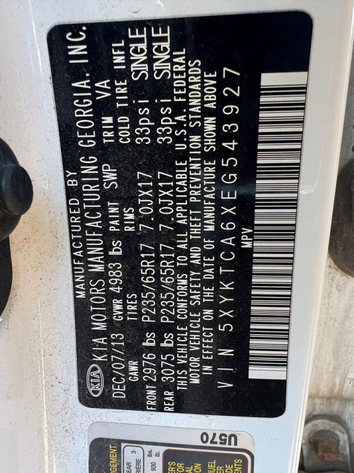 2014 KIA SORENTO - 5XYKTCA6XEG543927, колір - Білий, 2.4, Бензин, Повний привід із США