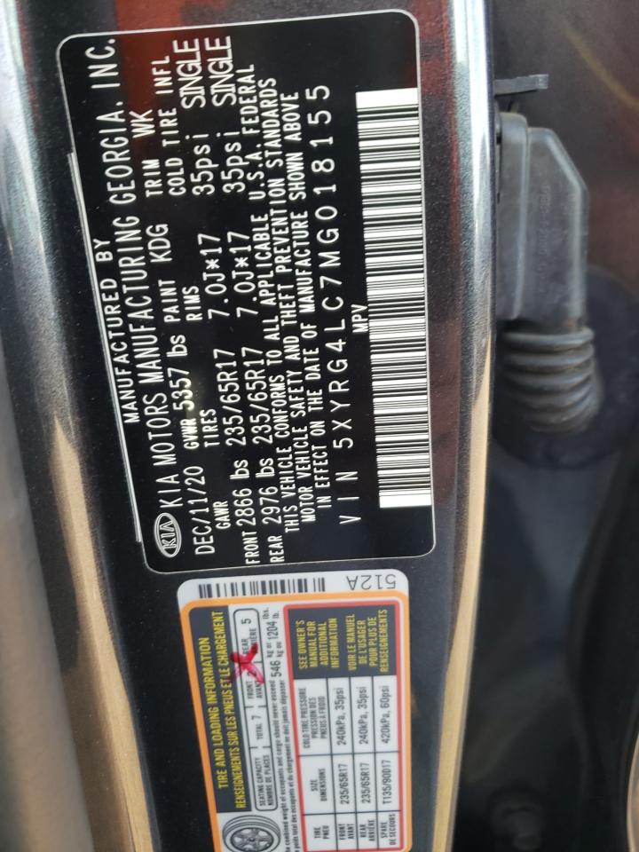 2021 KIA SORENTO - 5XYRG4LC7MG018155, колір - Сірий, 2.5, Бензин, із США
