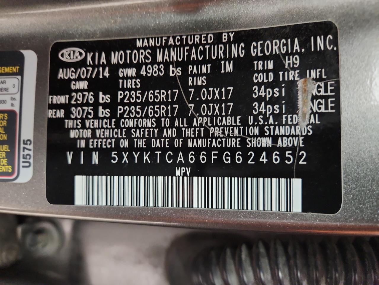 2015 KIA SORENTO - 5XYKTCA66FG624652, колір - Сірий, 2.4, Бензин, Повний привід із США