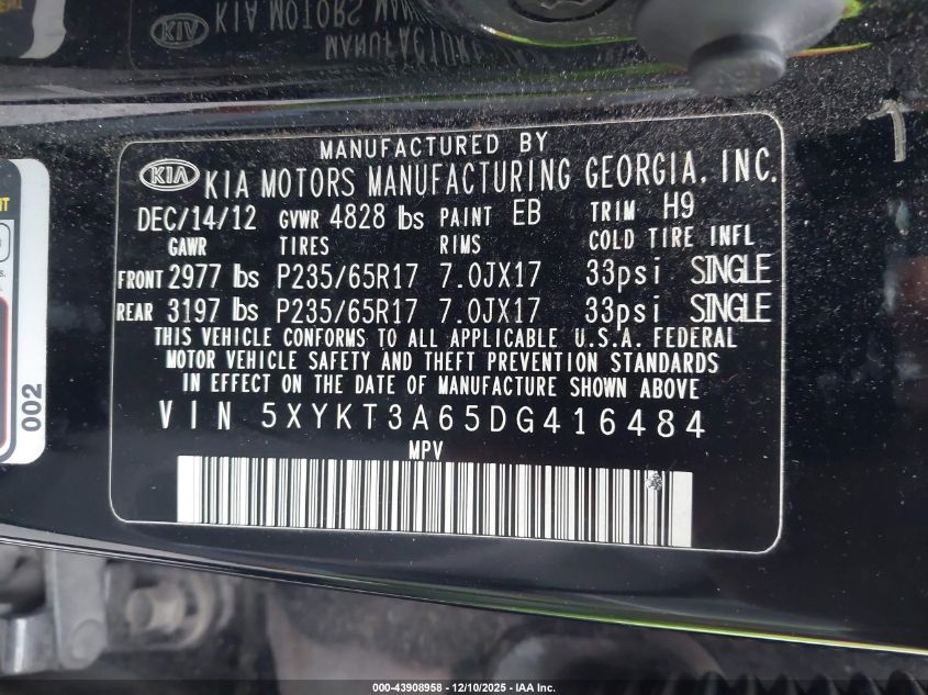 2013 KIA SORENTO - 5XYKT3A65DG416484, колір - Чорний, 2.4, Бензин, Передній привід із США