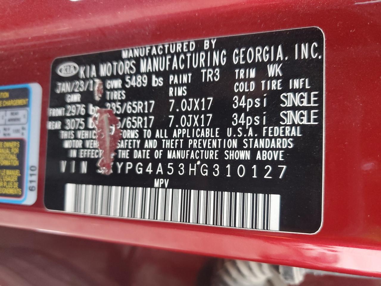 Колір ЧервонийЦиліндри 6VIN 5XYPG4A53HG310127Стан Заводиться та їде (перевірено)Ушкодження Передня або задня
