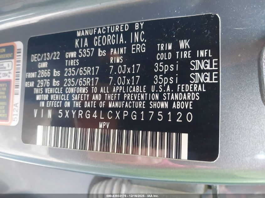 2023 KIA SORENTO - 5XYRG4LCXPG175120, колір - , 2.5, Бензин, Передній привід із США