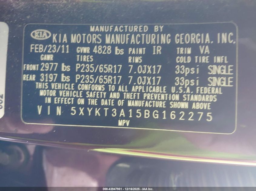 Колір БордовийЦиліндри 4Привід Передній привідVIN 5XYKT3A15BG162275Стан НевідомоУшкодження Задня ліва