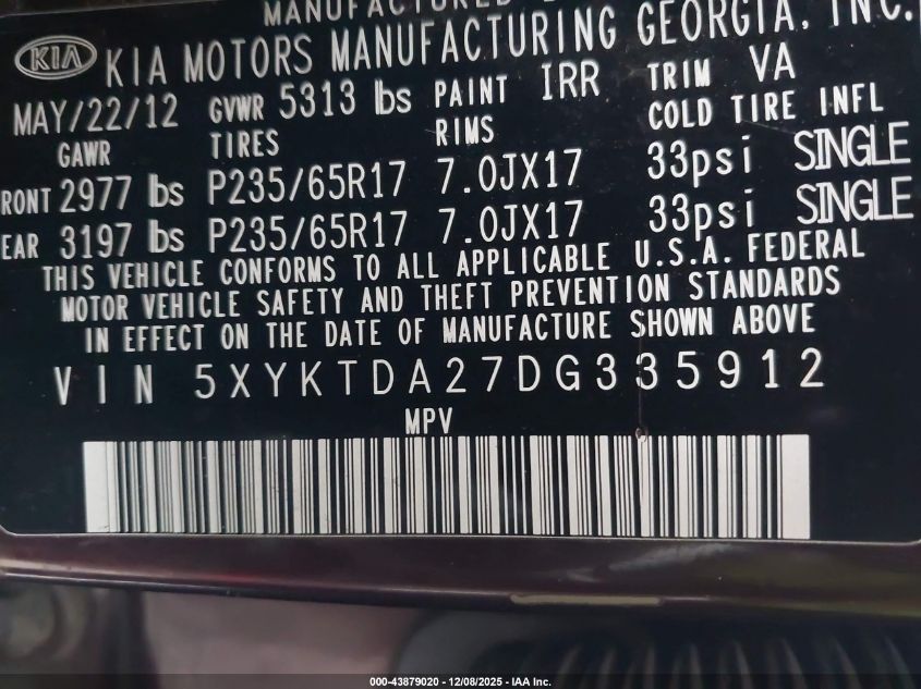 2013 KIA SORENTO - 5XYKTDA27DG335912, колір - Бордовий, 3.5, Бензин, Повний привід із США