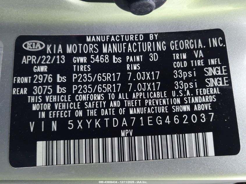 2014 KIA SORENTO - 5XYKTDA71EG462037, колір - Срібний, 3.3, Бензин, Повний привід із США