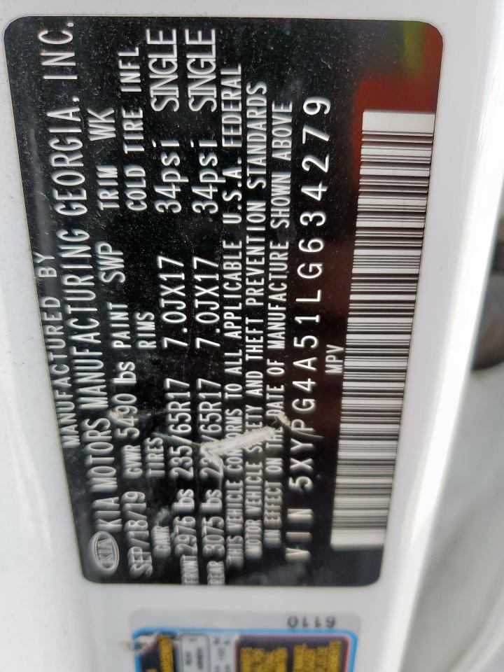 2020 KIA SORENTO - 5XYPG4A51LG634279, колір - Білий, 3.3, Бензин, із США