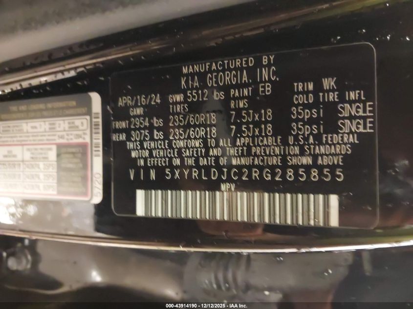 2024 KIA SORENTO - 5XYRLDJC2RG285855, колір - Чорний, 2.5, Бензин, Повний привід із США