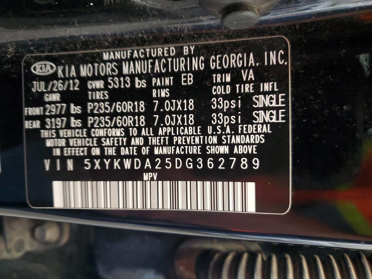 2013 KIA SORENTO - 5XYKWDA25DG362789, колір - Чорний, 3.5, Бензин, Повний привід із США