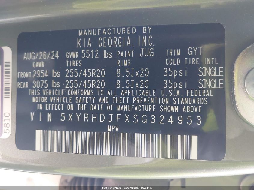 2025 KIA SORENTO - 5XYRHDJFXSG324953, колір - Зелений, 2.5, Бензин, Повний привід із США