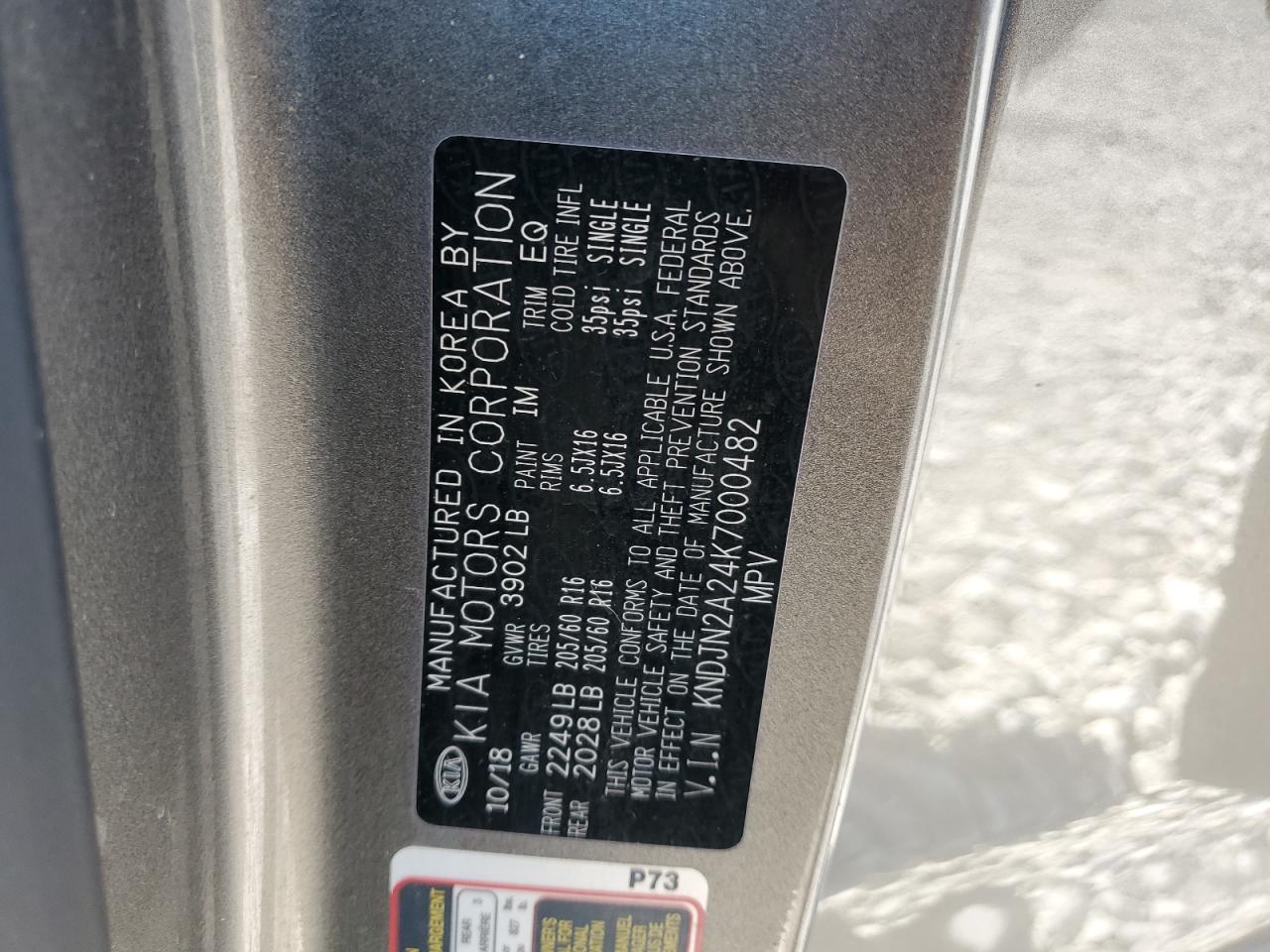 Колір СірийЦиліндри 4VIN KNDJN2A24K7000482Стан Заводиться та їде (перевірено)Ушкодження Передня або задня