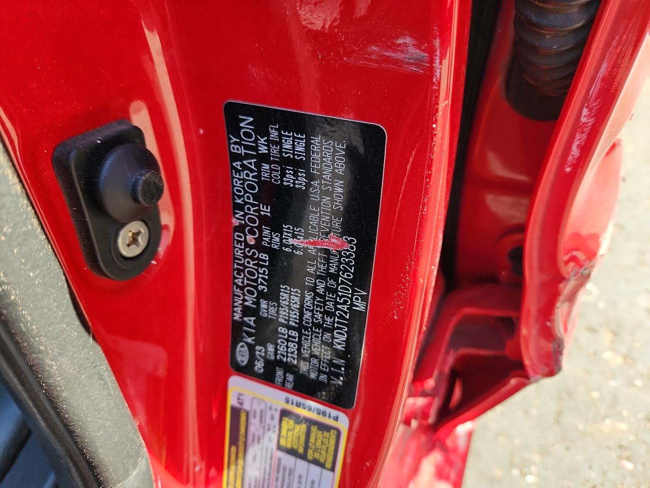 2013 KIA SOUL - KNDJT2A51D7623383, колір - Червоний, 1.6, Бензин, із США