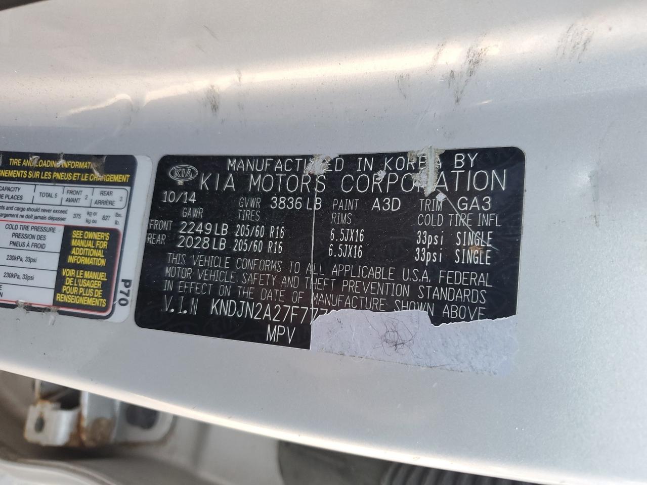 Колір СрібнийЦиліндри 4VIN KNDJN2A27F7772447Стан НевідомоУшкодження НезначніДата аукціона 2025-10-07