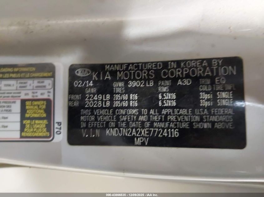 2014 KIA SOUL - KNDJN2A2XE7724116, колір - Срібний, 1.6, Бензин, Передній привід із США